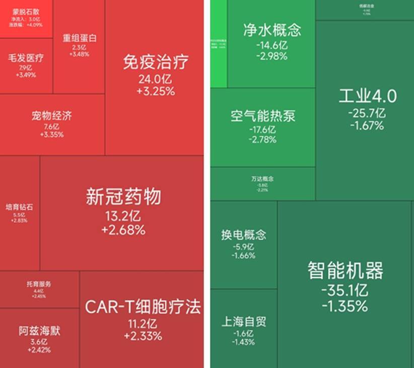 6月3日A股三大指数集体反弹股票配资网大全,截至收盘,上证指数涨0.43%报3361.98点;深证成指涨0.16%报10057.17点;创业板指涨0.48%报2002.7点。从板块行情上来看,今日表现较好的有毛发医疗、重组蛋白和新冠药物,而净水概念、空气能热泵和工业4.0等板块下跌。